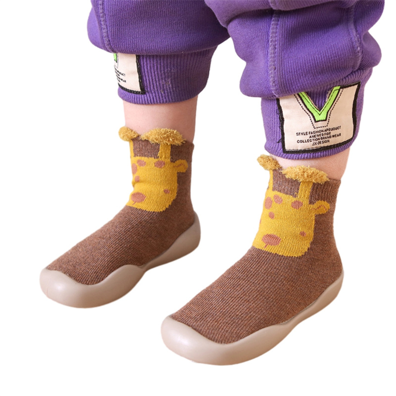 5 Pairs Kids Baby Girl Boys Toddler Anti-slip Slippers Socks Cotton Shoes Winter Warm